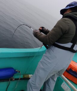 丘が見えないくらいの濃霧の中、良く釣れました。