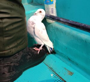 沖で船に乗ってきて、港までず~と乗船🐤