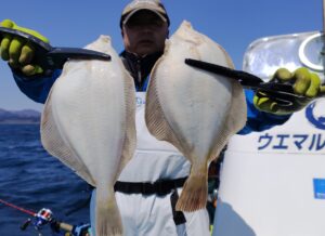 カレイが底荒れでほとんど動いていないので魚がいる所へ